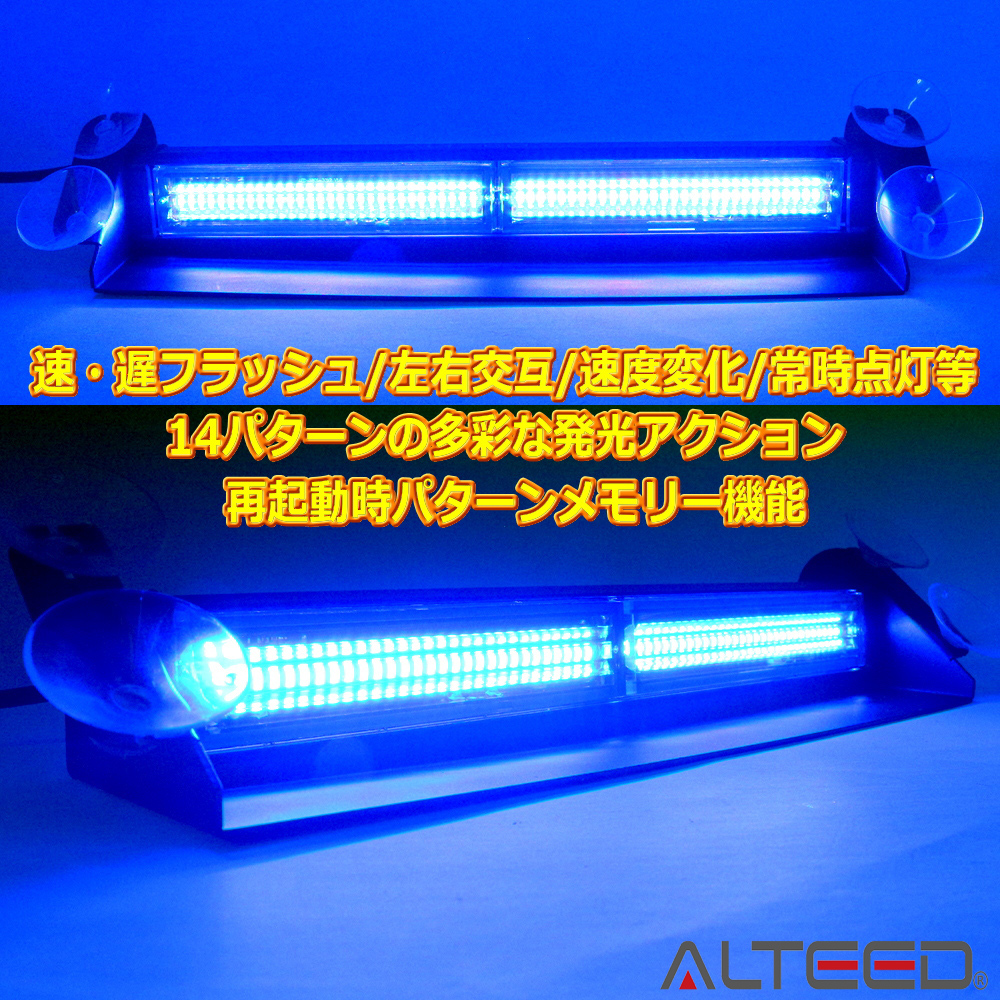 | 発光色:青 作動パターン:低速点滅/高速点滅/交互点滅/全点灯等14種 寸法:350×80×60mm 質量:650g 電源:プラグ式/コード長約5m 定格電圧:DC12V/24V 対応電圧:DC9-30V 消費電流:0.2-2.0A 作動温度:-30℃~+50℃ 防水防塵規格:IP65 EMC規格認証:ECE R10 主素材:アルミ/PC/合金鉄(ステー) 【点灯パターン】 1:フラッシュ/遅 2:フラッシュ/遅(減光) 3:フラッシュ/遅-交互 4:フラッシュ/速 5:フラッシュ/速(減光) 6:フラッシュ/速-交互 7:3連フラッシュ 8:3連フラッシュ-交互 9:4連フラッシュ 10:4連フラッシュ-交互 11:明暗変化点灯 12:連続フラッシュ 13:速度変化交互フラッシュ 14:常時点灯 |
