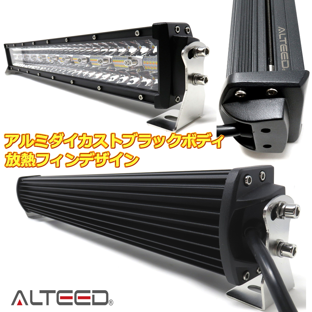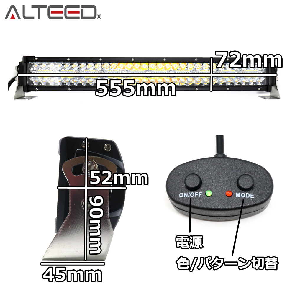 | □照明灯、ワークライトに最適なLEDライトバーです。 □2色の発光を切替え可能なので、ご使用シーンに合わせて1台2役のご使用をいただけます。 □各色フラッシュ点滅と全点灯パターンの切替えが可能です。 □LED配置、反射ミラーレンズを異なる配列で配置した2WAYデザイン。 □ミラータイプの反射レンズを搭載。LED数以上にミラー反射するのでより明るく光ります。 □10-30V対応なので12V乗用車から24V大型トラックまで幅広い用途に適合します。 □IP68規格、防水防塵仕様です。 |