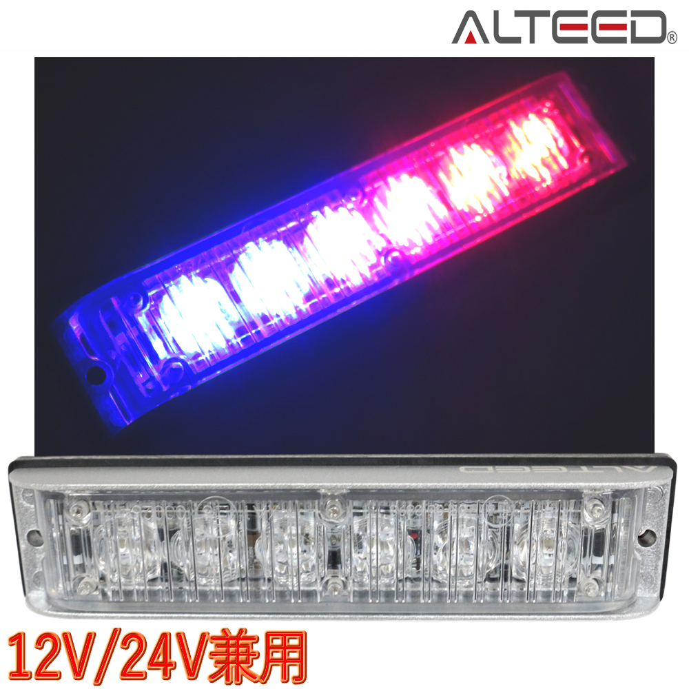 LEDフラッシュライトバー/赤青色発光24パターン/小型薄型アルミダイカストボディ&拡散レンズ/同期連動機能有り/12V-24V対応